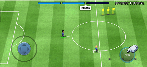3、基本的带球会了之后,下一步就是传球训练了。点一下队友就能传过去,没什么难度。