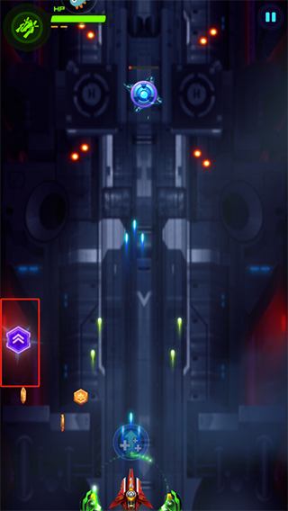 3、操作很简单,手指在屏幕上划拉就能控制飞机移动,对着敌人突突突就行。