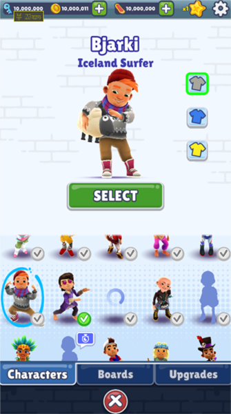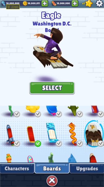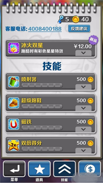 游戏里的道具是拿高分的关键。磁铁帮你吸金币,双倍得分让你分数翻倍,飞鞋能让你体验一把风驰电掣。什么时候用什么道具有讲究。