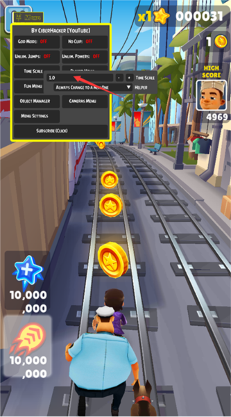 《地铁跑酷变速菜单》是一款跑酷游戏,玩家可通过修改器调整游戏速度。降低速度可增加操作时间,减少错误率,提升挑战性或趣味性。游戏中,你需要跳跃、滑动、攀爬,避免被警察和障碍物追上。目标是跑得更远,收集金币和道具以获得更高分数。