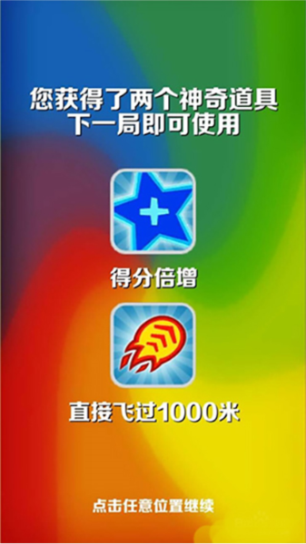 通过开箱子或者商店买,能搞到喷射起跑的道具,小的能冲250米,大的1000米。但这玩意儿只能开局用,而且飞的时候吃不到金币。