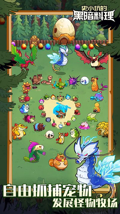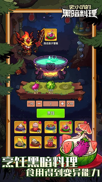 2、最有意思的是喂食系统。抓来的英雄不是摆设,你可以给他们喂各种乱七八糟的食物,然后他们就会产生异变,获得新技能。不同的食物组合,变异效果也完全不同,加攻击、加防御、加血量,怎么搭配全看你自己研究。