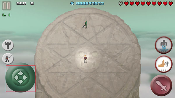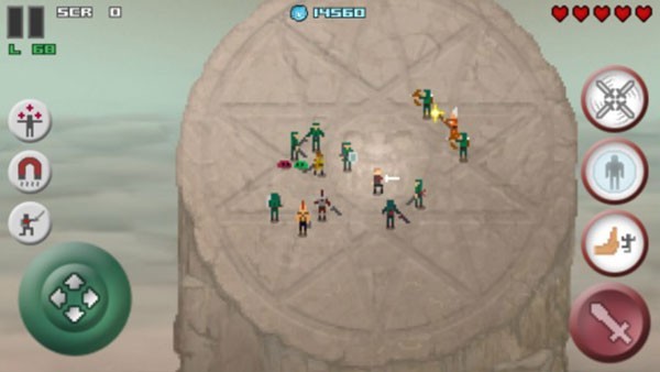 2、操作嘛,左手边那个虚拟摇杆,控制你的人物满场跑。右手就负责挥你那把大剑砍人,或者干脆把敌人直接推下台子,简单粗暴。