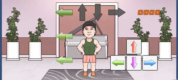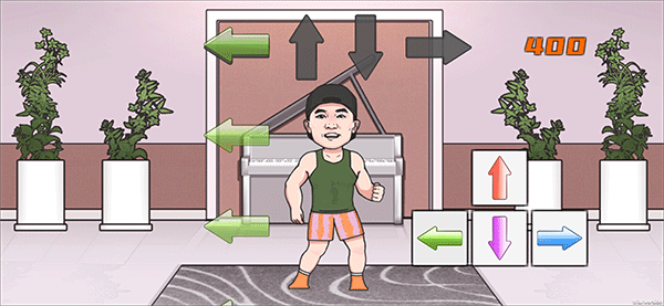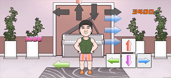 1、游戏开始后,你看屏幕下方,箭头会跟着音乐往上冒。你的任务就是在箭头飘到顶部框框里的时候,精准地按下对应的方向键,这样屏幕里的刘畊宏才会跟着你一起动。
