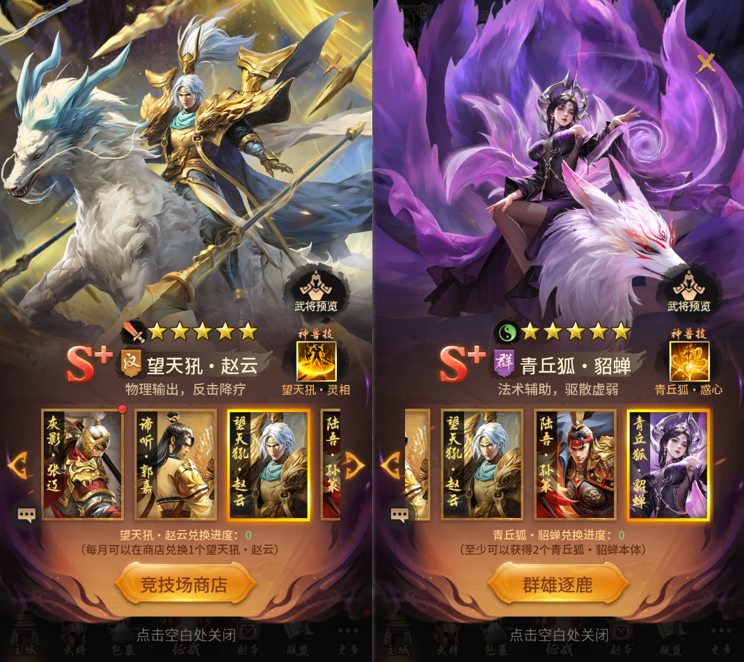 还有一个叫群雄逐鹿的PVP竞猜,参与一下,也能搞到最少2个S+貂蝉。