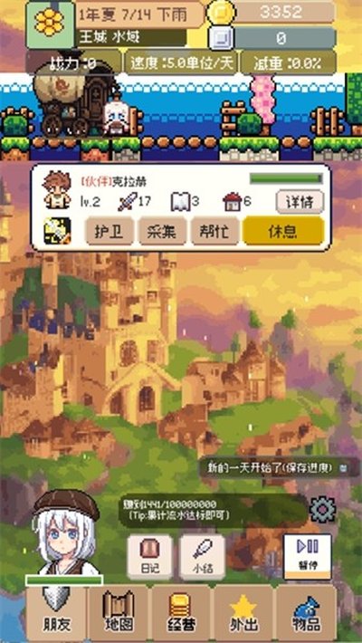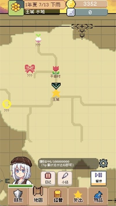 这个外出系统功能还挺多。能自己拿材料做新东西,交易所用来买卖商品,冒险者公会能接活换东西,事件功能就是解锁新剧情和任务的地方。都点点看就明白了。
