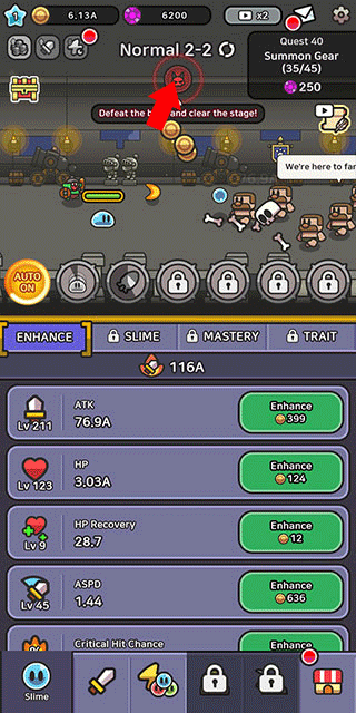 1、玩家扮演的是一只挺萌的史莱姆,任务就是保护森林的安宁。