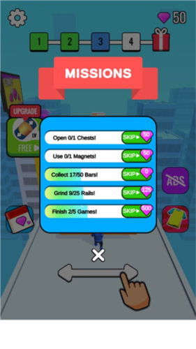4、在众多竞争者中秀出你的真实水平,争取拿到第一。这游戏玩法有点意思,沿途要灵活地吃金币和其他道具,面对数不清的关卡考验。整体操作很简单,左右动动手指头就能搞定大部分任务,然后解锁更多的道具和奖励。