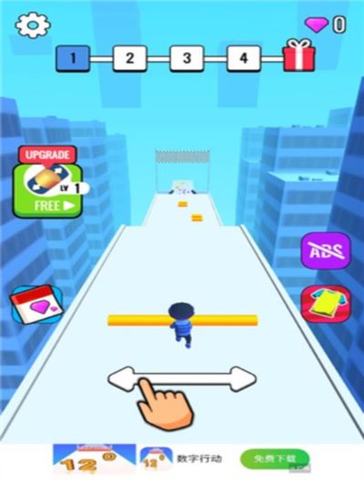 2、往前跑的时候,核心任务就是让你手里的棍子变长,这样才能过那些越来越宽的坎,冲到终点线。