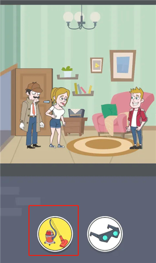 1、第一关很简单,直接选那个吸尘器,把碍事的衣服给吸走就行了。大家看下面这张截图,就这么干。