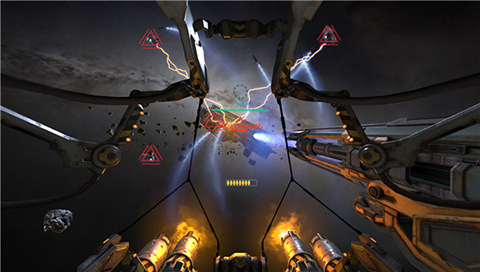 5、宏大的太空场面和紧凑的剧情结合得不错,再加上VR设备带来的身临其境的感觉,让这游戏在Gear VR平台上确实算得上是一种享受。大家看下面这张截图,这宇宙的空旷和战舰的压迫感,做得还是可以的。