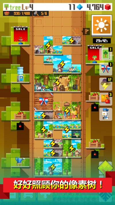 想拥有一棵能疯狂长出可爱楼房的神奇大树吗?在像素树的世界里,你就是这棵树的主人!没事晃晃树干,金币和果子就会哗啦啦往下掉,超级解压。别忘了去树根下翻找图纸,为你的小动物居民们建造温馨的家园,亲手打造一个萌趣十足的树上世界吧!