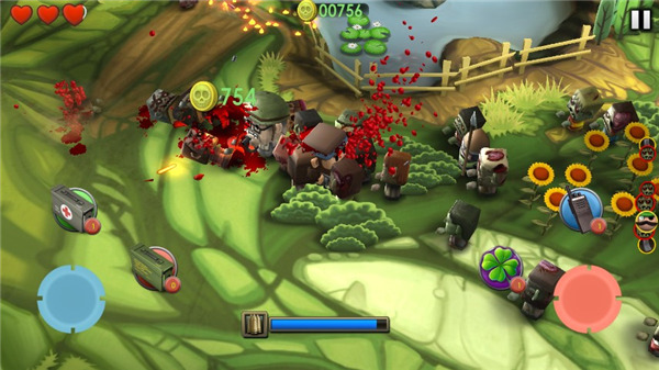 整个游戏的美术风格就是那种卡通方块人,画面放现在看也还算干净利落。角色和僵尸都挺萌,但打起来可一点不含糊。特别是当屏幕上乌泱泱挤满僵尸的时候,配上那个紧张的BGM,代入感直接拉满,这可不是现在那些换皮游戏能比的。任务关卡贼多,但核心玩法都是无限生存,就是看你能撑多久。装备系统也有,武器装备都能升级,地图也换着花样来,保证你不会觉得腻歪。喜欢这种无脑突突突解压的,可以下来试试。