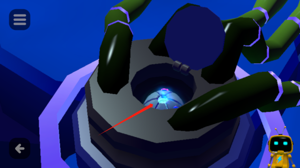 17、回到主场景,会发现那个大水母短路了。点一下它中间的控制板,看到下面这个界面,再点一下那个发光的球。