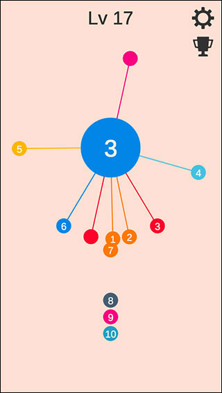 游戏的界面极简风。米白色的底,中间一个黑色的“太阳”在那儿不停地转,周围连着一堆小黑球,看着还真有点抽象派宇宙星图的味道。黑白对比拉满,眼睛看着不累。玩法更是简单粗暴,中间那玩意儿转悠的时候,你就点屏幕,把底下带数字的针一根根扎上去,全扎完就算过。