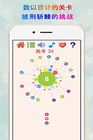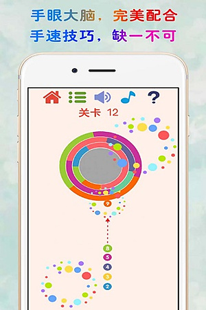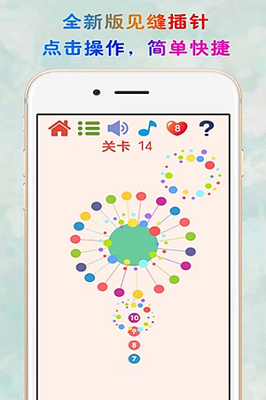 3、中间的球一直转,你得瞅准空隙把带数字的针射上去,还不能碰到已经插上去的。几千个关卡,够你玩到地老天荒。
