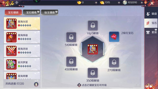 3. 镶嵌宝石:宝石能给装备提供额外的属性,简单粗暴。随着角色等级提升,能镶嵌宝石的孔位也会越来越多。