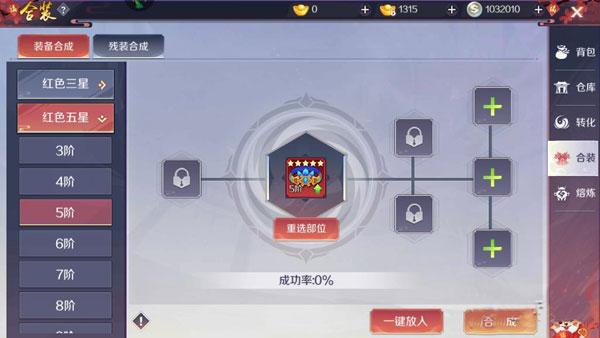4. 装备进阶:这个提升方式效果立竿见影。游戏里我们打到的大部分都是三星装备,通过合成功能,可以直接把它们提升到五星。合