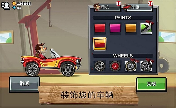3、超级跑车,名字就说明了一切,就是快。但这车有个坑,细心的玩家会发现升级项里有个变速箱,意思就是它需要很长的直线或下坡路段来提速。别就是轮子大,过软桥和小坑洼有优势。