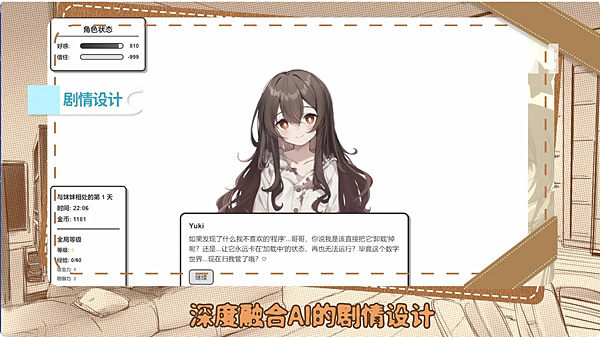 1、AI 互动:这游戏的AI互动是三件套:实时对话、Live2D动画加实时配音。你打字或者开麦跟她聊,她不仅会用语音回你,小人还会根据情绪做各种表情和动作,不是个木头桩子。