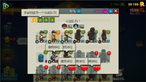 2、左上角为勇气点数,开局会以每秒增加的方式恢复,用于派遣出战单位。