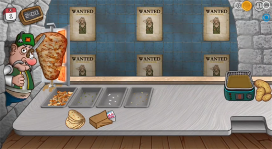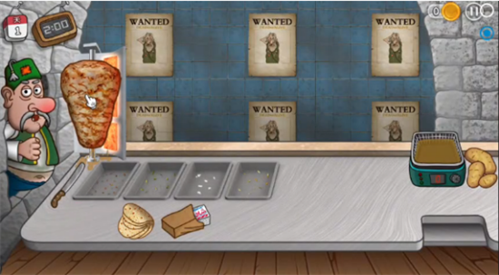 1、根据顾客需求制作沙威玛,完成订单获取金币收益。