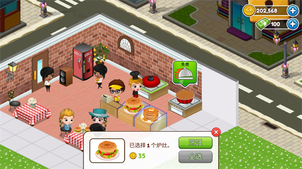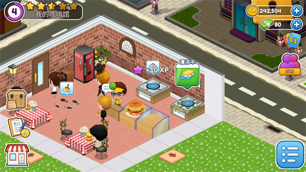 1、制作料理并接待顾客,通过销售获取金币与收益。