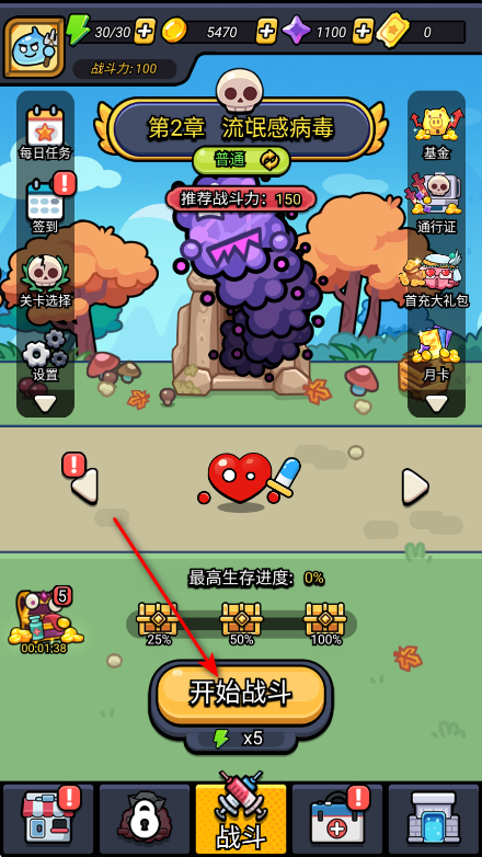 1、进游戏主界面,别犹豫,直接戳那个大大的“开始战斗”按钮,立马就能进关卡开打了。