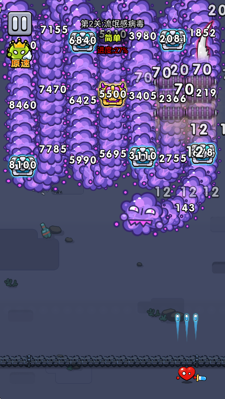 1、挑战的病毒BOSS花样不少,每个头目都有自己独特的行动模式和弹幕,不是无脑站撸就能过的,你得先摸清它的弱点,然后针对性地制定打法。