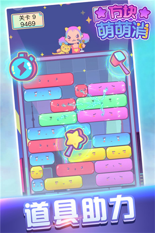 1、可爱的卡通画风和色彩鲜明的方块风格,消除方块时会有音效卡点,带来轻松的体验;