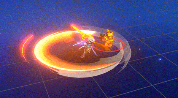 2、英勇打击:一个扇形AOE,能同时打3个目标,造成3段伤害和减速。打怪的时候目标数增加到5个,属于常规的范围输出手段。
