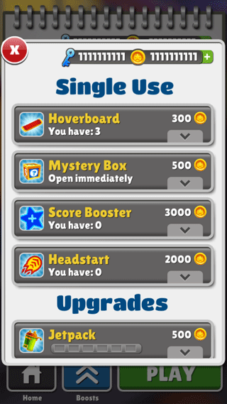 5、当然,你也可以在商店里用金币或者钥匙直接购买各种道具,想让自己的跑酷过程更轻松有趣,就去商店逛逛。