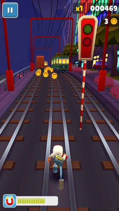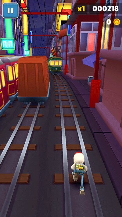 10、当你在三条轨道上来回接金币时,通常最后一辆出现的火车速度是最快的,要留神。