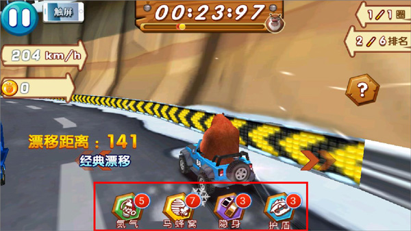 丢出去以后,会自动追踪前面的对手。谁要是被打中了,会被蜜蜂缠住停个一秒钟,足够你超车了。