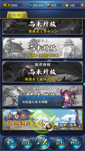 4、跟着主线任务点点点,很快就会让你打开副本界面,就是下面截图里这个图标。
