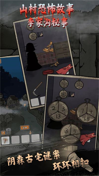 山村老屋鬼嫁衣是一款灵异类剧情解谜游戏,别名叫山村老屋李家沟,故事用民间山村恐怖故事作为题材,玩家将扮演政府的工作人员,应政府要求于前往李家沟村,调查1954年全村一百四十二口人失踪的离奇案件,在李家沟中探索,当年的他们到底是活着还是死了,古宅里的哭声又是谁,不要被发现,找到1954年的真相,询问村民们线索,不要引起他们的怀疑,寻找关键线索,活着离开这里。