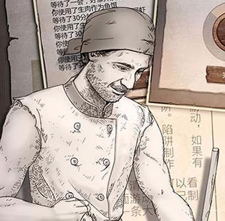 背景故事说他在厨房干了十二年,手艺没得说,就喜欢研究新菜。为了开阔眼界跑去当船厨,结果就流落荒岛了。性格是那种大大咧咧的乐天派。