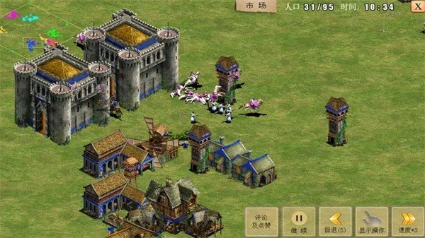 前提条件:必须先有城墙。选中农民在两点间拉直线建造。