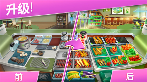 3、用赚来的金币来升级餐厅和各种设备,这样就能提高工作效率;