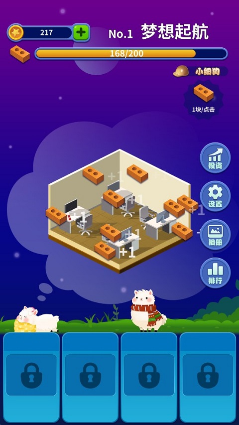 1.刚下来玩了会儿,这游戏吧,说白了就是个休闲点点点的模拟建造。剧情挺扯的,外星人闲着没事干跑来入侵羊驼的梦,然后你就得帮这倒霉的羊驼在梦里当个包工头,盖各种奇奇怪怪的东西。玩法没啥门槛,就是对着屏幕上的地块一通狂点,搬砖头完成任务。老实说,纯手动点久了麒麟臂都得练出来。