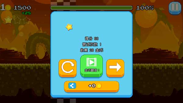 4、跑到终点,这关就算过了,然后就进结算界面了。