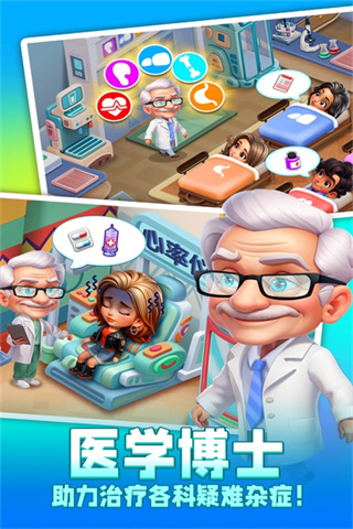 3、各式各样的角色和故事场景让游戏体验新鲜有趣,招募医务人员去治疗更多病人;