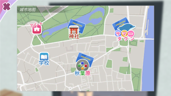 1、游戏里能攻略的对象有好几个:学校1A班里有四个妹子,神社商店里有一个,秋叶原餐厅门口有一个走来走去的,另外秋叶原摊位上卖的那个抱枕也能当“女友”。大家可以看看下面这张图,找找目标。