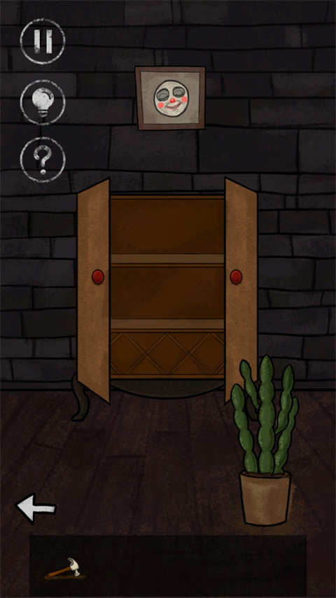 5、点“下一关”,到新场景先看柜子,把里面的锤子给拿了,就是收集道具。看下面这张截图,就是这玩意儿。