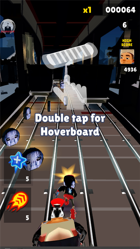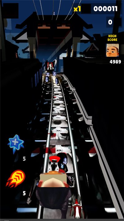 4、跑的时候别忘了收集路上那些贞子脸的金币,还有各种道具也要吃,这些都是你刷高分的本钱。