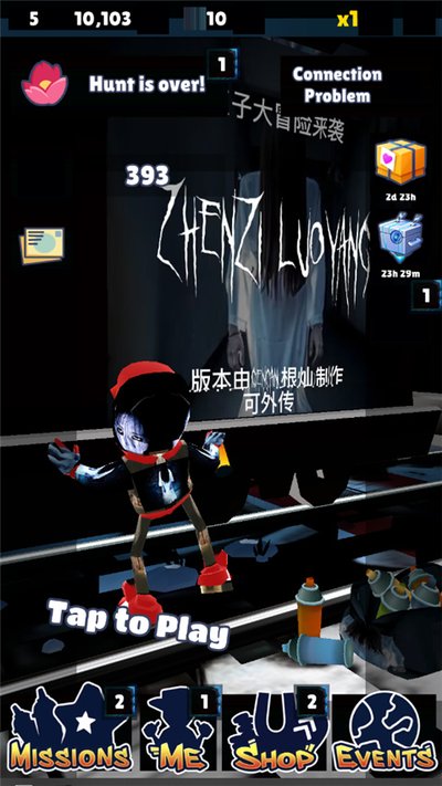 3、一进游戏就感觉不对劲了,经典的地铁站变成了黑白像素风的洛阳城,到处都是贞子。操作还是老一套,手指在屏幕上向上划就是跳,向下划就是滚,左右划就是变道。