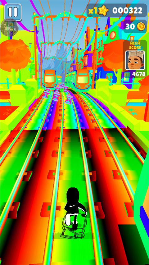 1、这游戏的基本逻辑没变,就是一路跑,躲开火车障碍,顺手把路上的金币全给收了。终极目标就一个:尽可能活得久,把分数刷到天上去。大家看下面这张截图,就是日常跑酷的状态。