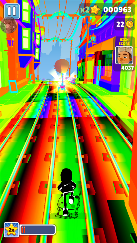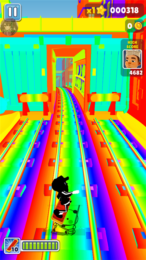 - 跑酷过程中,你会捡到一堆辅助道具,什么磁铁、双倍积分、喷射器、弹簧鞋之类的。这些东西能帮你更快更轻松地越过那些障碍物,是通关拿高分的关键。