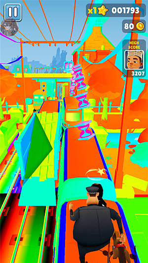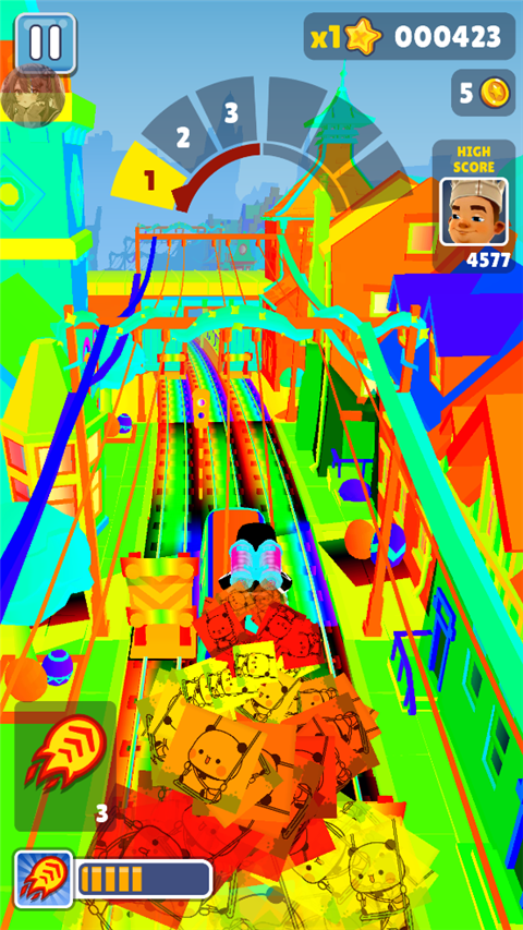 - 捡到飞行背包(Jetpack)之后,倒计时结束前你都能直接上天飞行。在天上飞的时候,地面上的所有障碍和火车都跟你没关系,但天上的金币你还是能照吃不误。