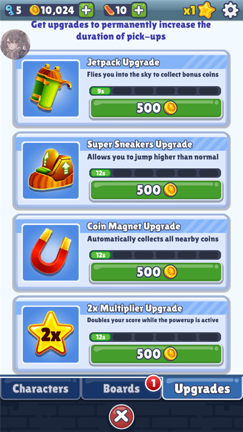 - 拿到双倍得分(2X Multiplier)这道具,在有效时间内,你吃一个金币得到的分数会翻倍,刷分神器,懂的都懂。